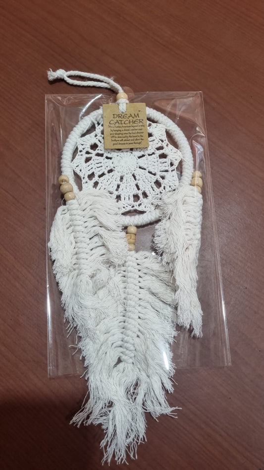 12cm Handmade Macrame Dreamcatcher – Cotton Crochet Boho Wall Hanging with Wooden Beads | Natural Home Décor Gift